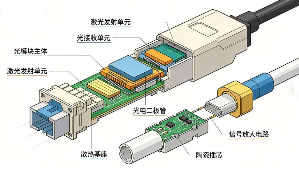 光纖連接器是光通訊傳輸?shù)摹敖涌凇保浞庋b需要實現(xiàn)光纖與陶瓷插芯、金屬外殼的精細連接,要求焊錫接頭無空隙、無虛焊,否則會導(dǎo)致光信號損耗增加。激光焊錫可精細控制焊錫量和焊接溫度,實現(xiàn)光纖連接器的精密封裝,保障光信號的低損耗傳輸,廣泛應(yīng)用于數(shù)據(jù)中心、電信骨干網(wǎng)等場景。